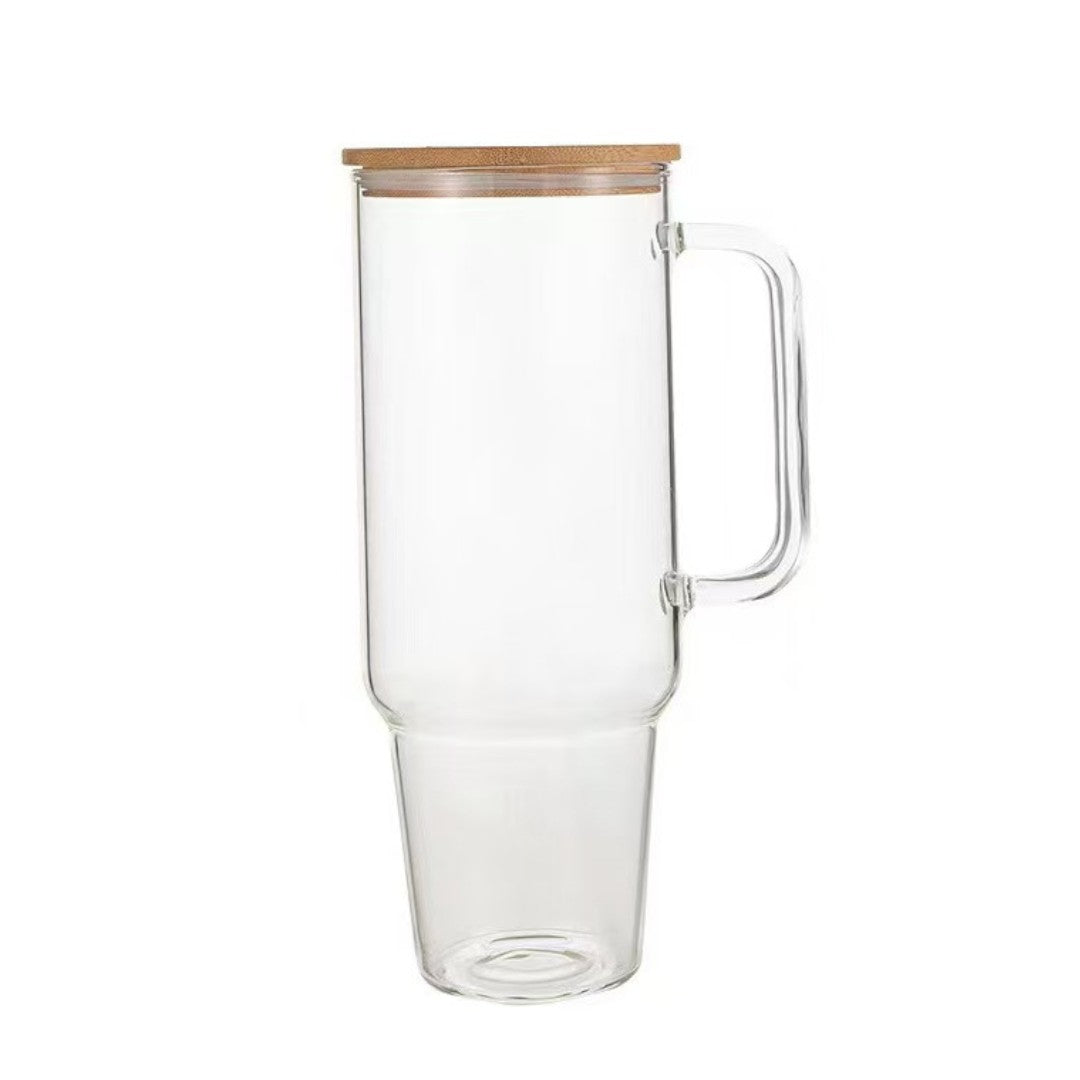 - Glass Tumbler Clear/Frosted with Wooden Lid and Straw