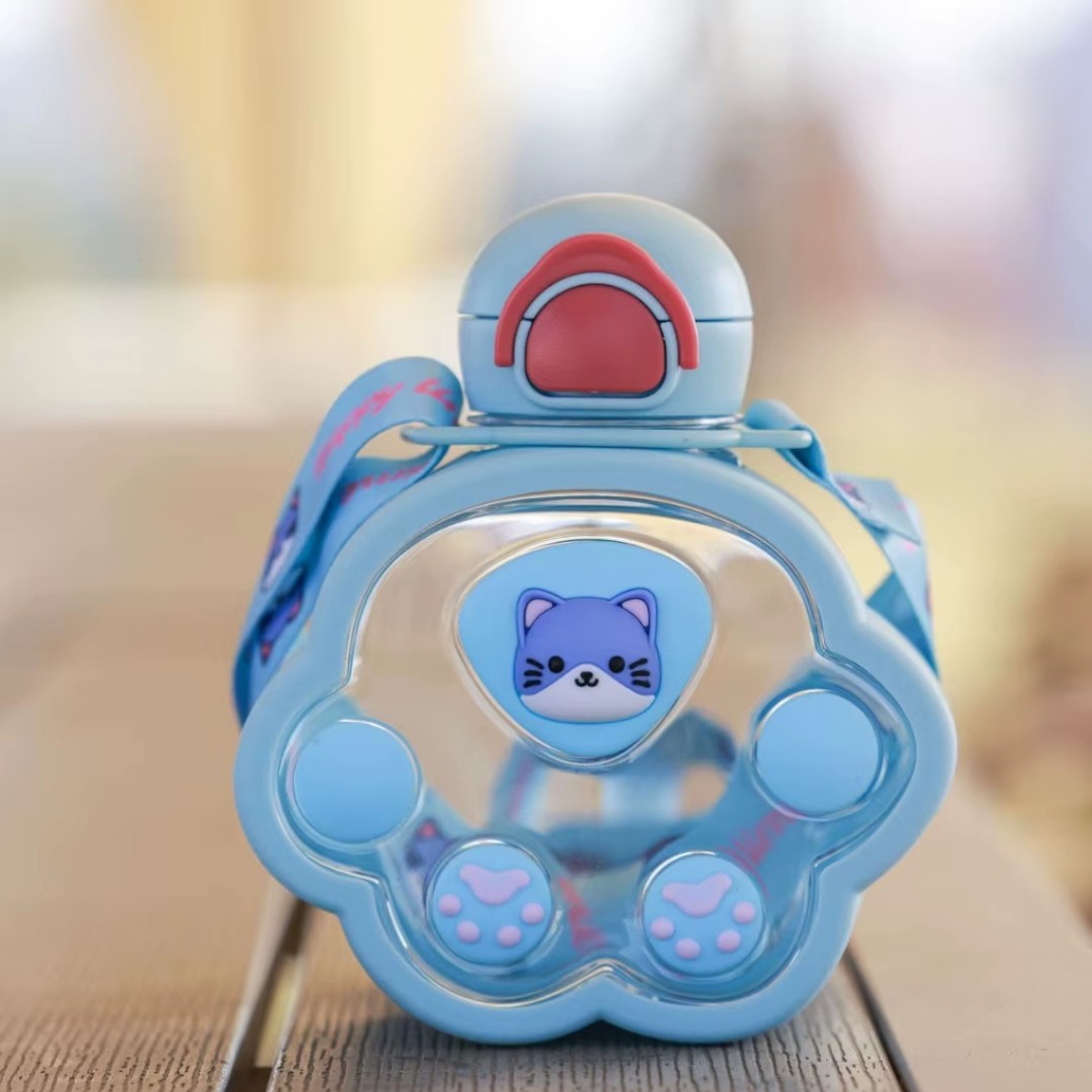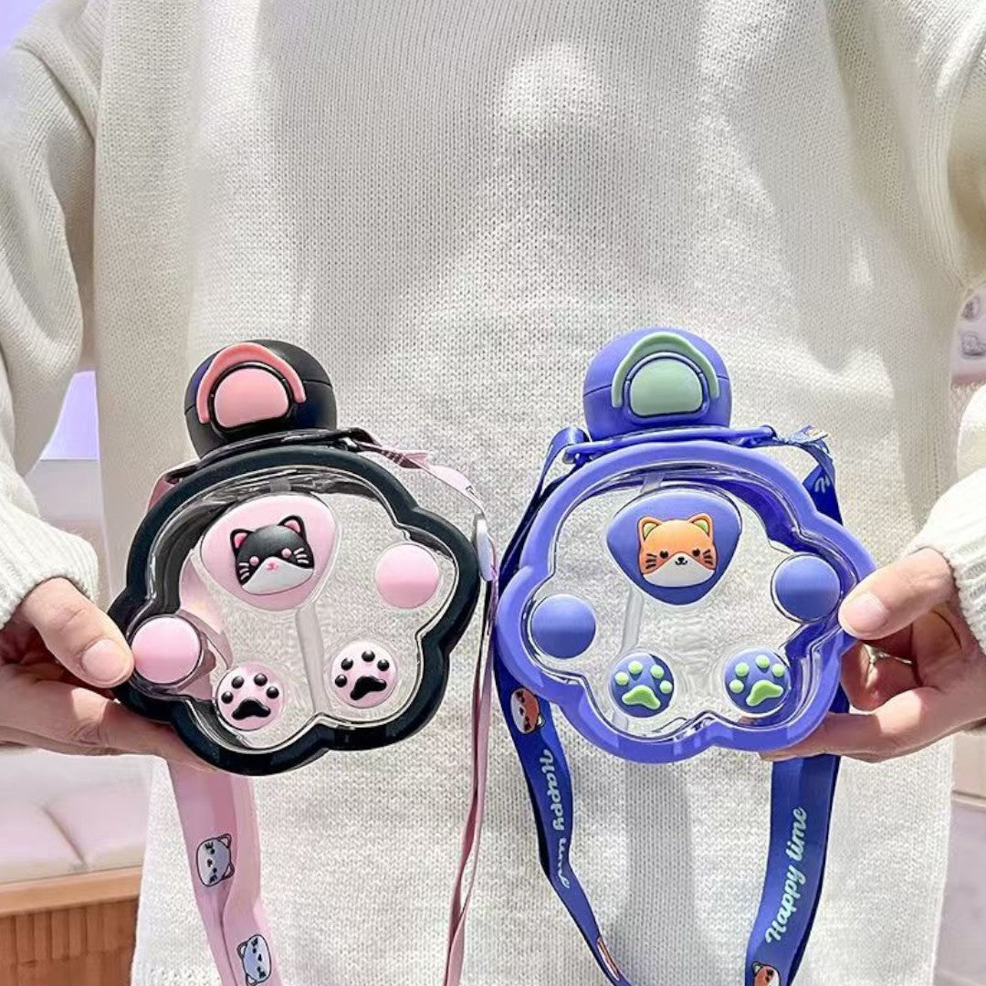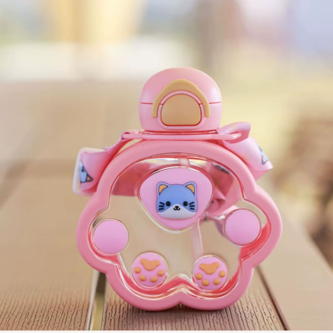 - Plastic Cartoon Cat Paw Water Bottle with Mini Straw 520ml