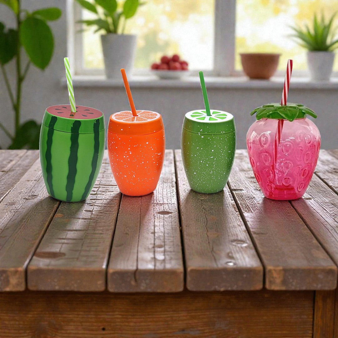 - 600ml Kids Fruit Shaped BPA Free Plastic Straw Cup Tumbler